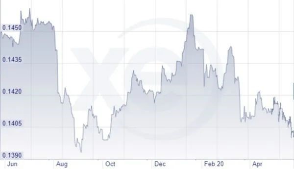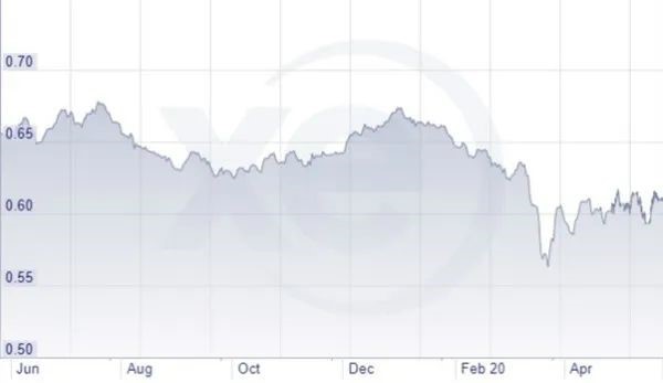 1  20196月(Jun. )至20204月(Apr. )期間,新西蘭元兌美元匯率走勢(shì)