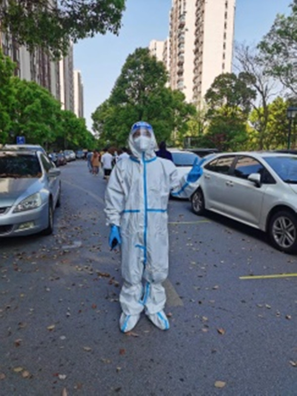 童煒,公司高管,從木業(yè)到物流,從生產(chǎn)服務(wù)到綠色循環(huán),童總一直在從事新的開拓性的嘗試,日常生活中也是一枚妥妥的暖男,他所在小區(qū)是一個(gè)只有兩棟樓的迷你小區(qū),鄰里之間都相識(shí)相知,連誰家的貓貓狗狗都分辨得出來,疫情降臨,小區(qū)出現(xiàn)了陽性,志愿者的風(fēng)險(xiǎn)可想而知。樂觀豁達(dá)的童總沖鋒在前,不光帶領(lǐng)志愿者配合居委做好防疫的瑣碎事情,為了緩解大家的緊張感,還帶領(lǐng)大家是不是嗨皮一下,你看看,他們的姿勢是不是很解壓呢?
