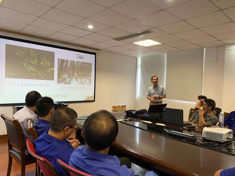 講座中王總從“樹木的溫情傳承”、“人與自然和諧共生”兩個(gè)角度生動(dòng)有趣地為全體員工普及了木材基礎(chǔ)知識(shí)。