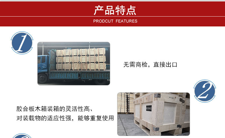 免熏蒸包裝制品是用膠合板和LVL膠方生產(chǎn)的包裝箱,又稱膠合板木箱,免熏蒸木箱。免熏蒸木箱原材料是經(jīng)過高溫加熱、除蟲后經(jīng)過高壓膠合而成,出口時(shí)無需熏蒸或者熱處理。